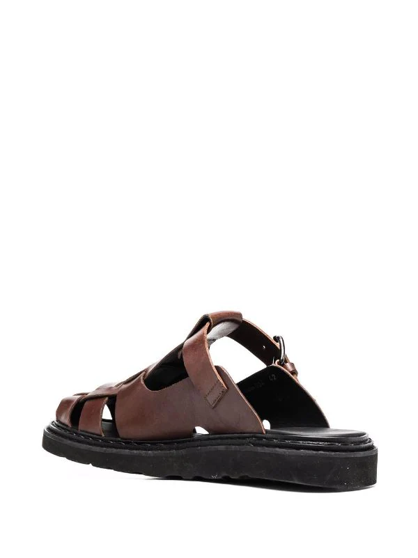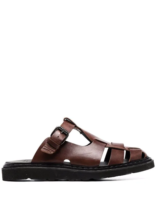 Semelle plate en caoutchouc, fermeture à boucles sur les côtés, design à enfiler, design à renfort cage, bout rond. Couleur : marron. Matière : cuir cordovan.