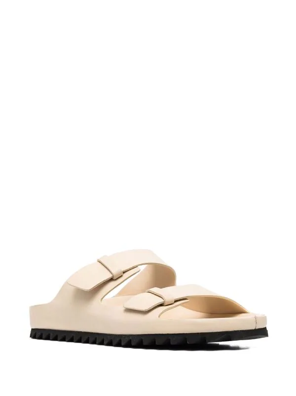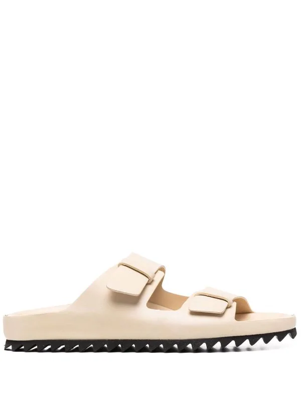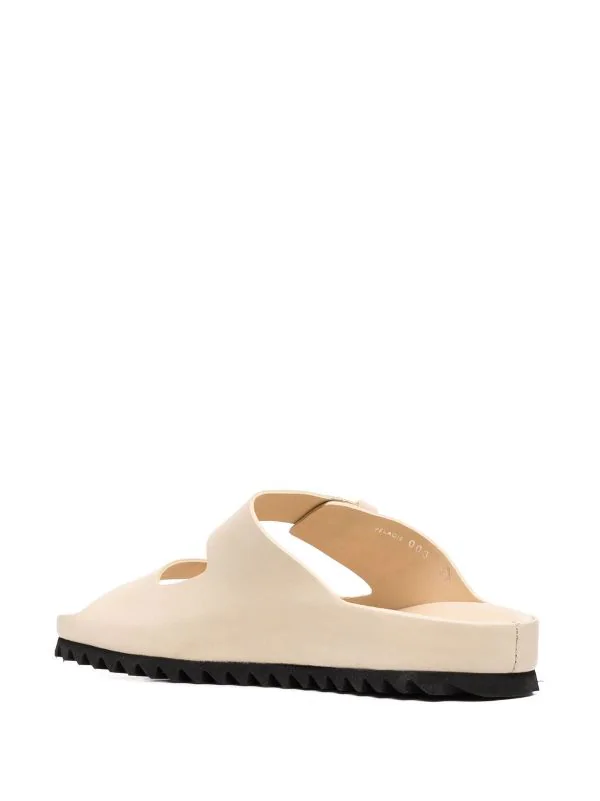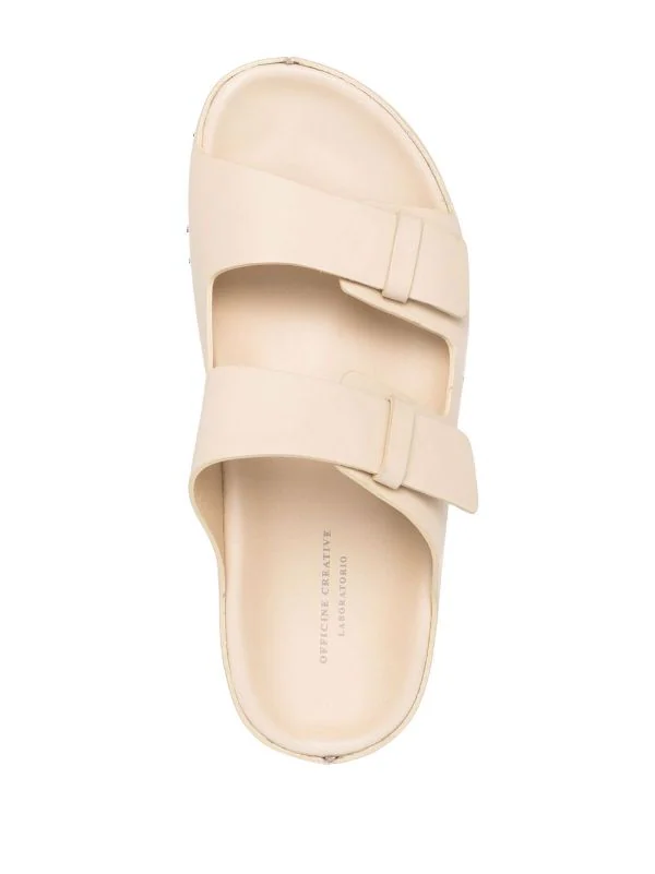 Semelle plate en caoutchouc, semelle intérieure anatomique, bout ouvert. Matière : cuir de veau.