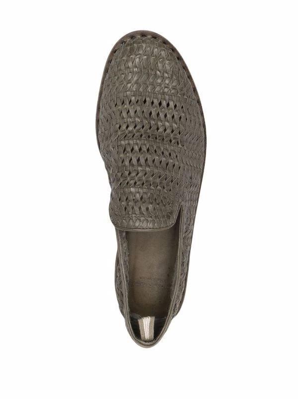 Design tissé, bout en amande, design à enfiler, semelle plate. Matière : cuir.