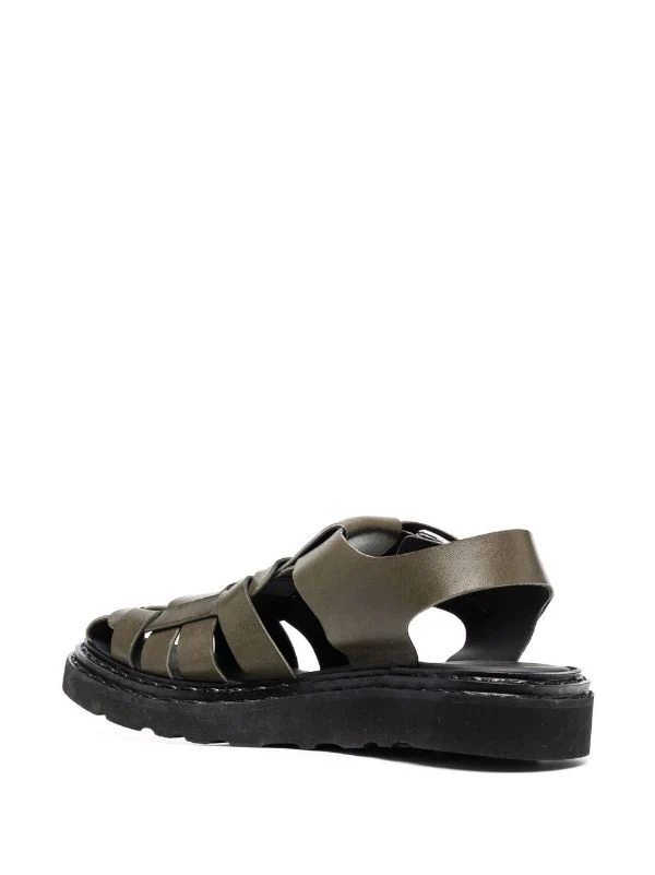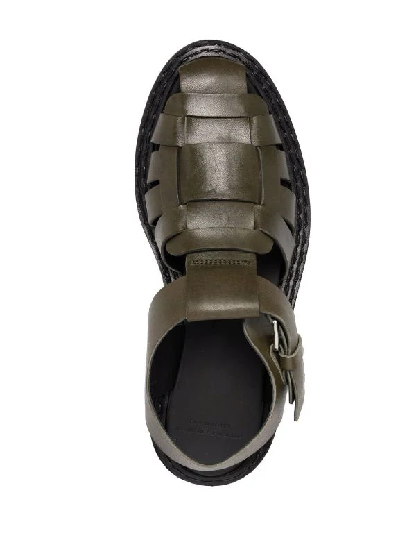 Semelle crantée en caoutchouc, bride arrière à boucle, design à renfort cage, bout rond. Matière : cuir cordovan.