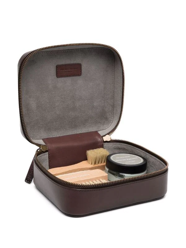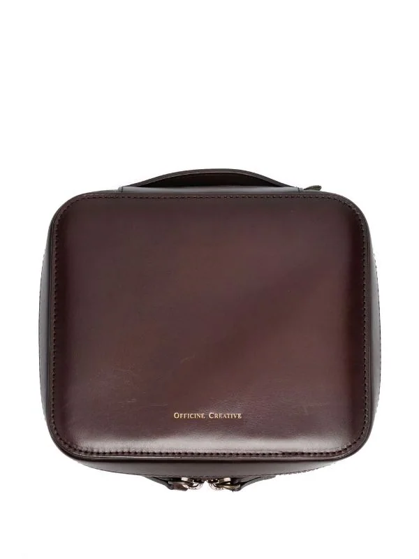 Logo embossé sur le devant, fermeture zippée tout autour, compartiment intérieur. Matière : cuir de veau.