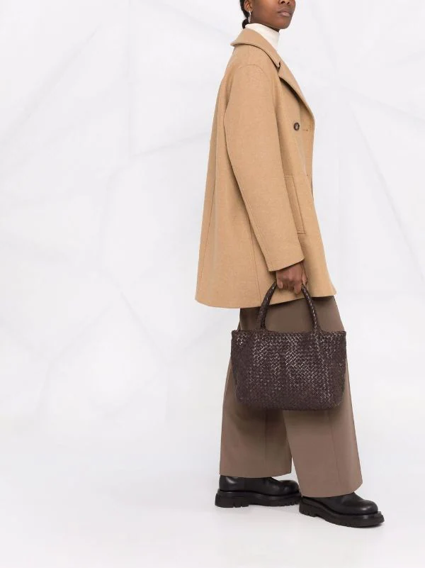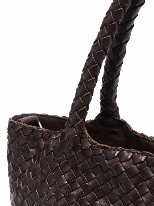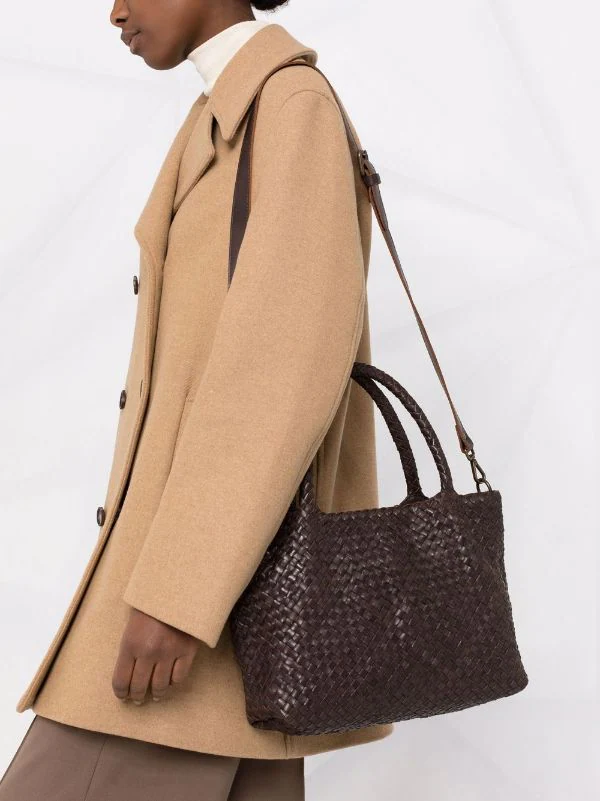 Design tissé, anses sur le dessus, poche intérieure zippée, bride porté épaule détachable. Matière : cuir.