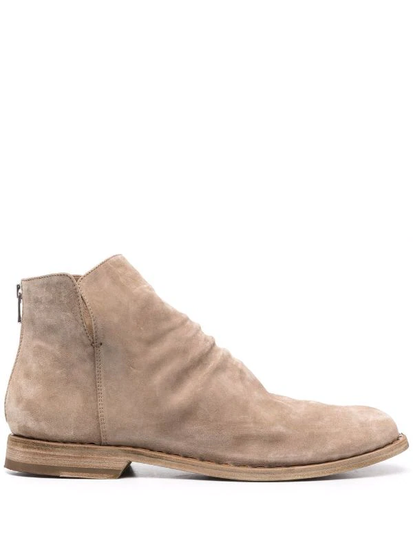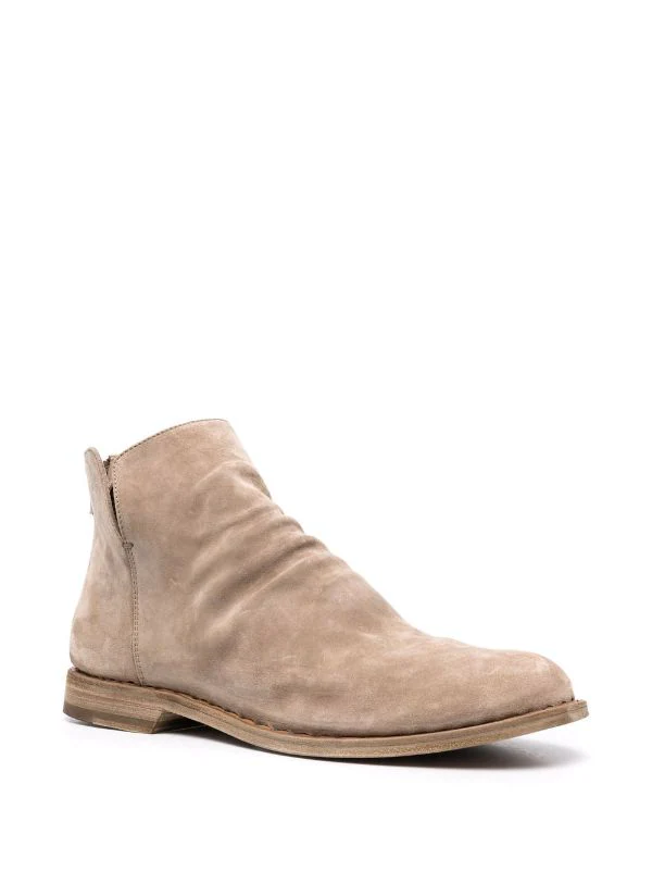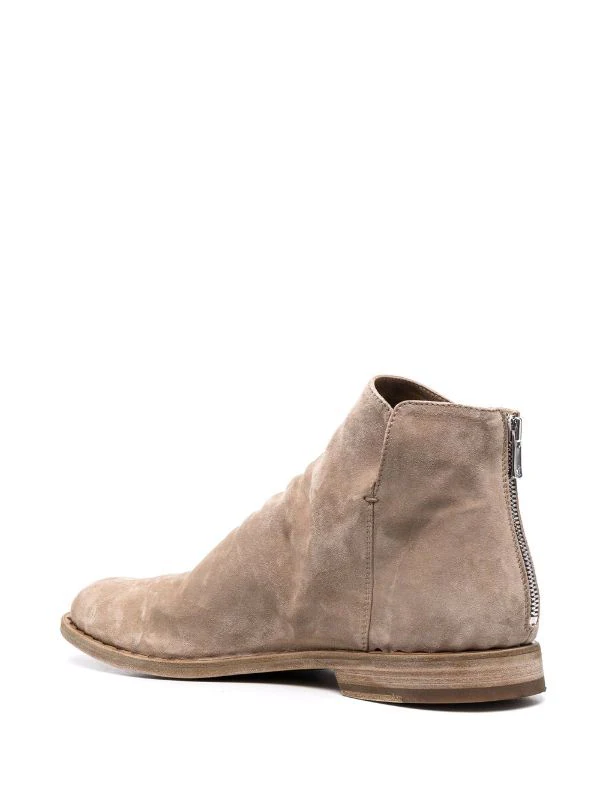 Bout en amande, fermeture zippée à l’arrière, hauteur cheville, semelle intérieure à logo, petit talon épais, semelle plate. Matière : chèvre velours.
