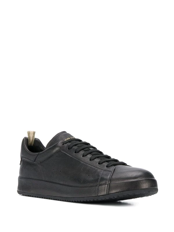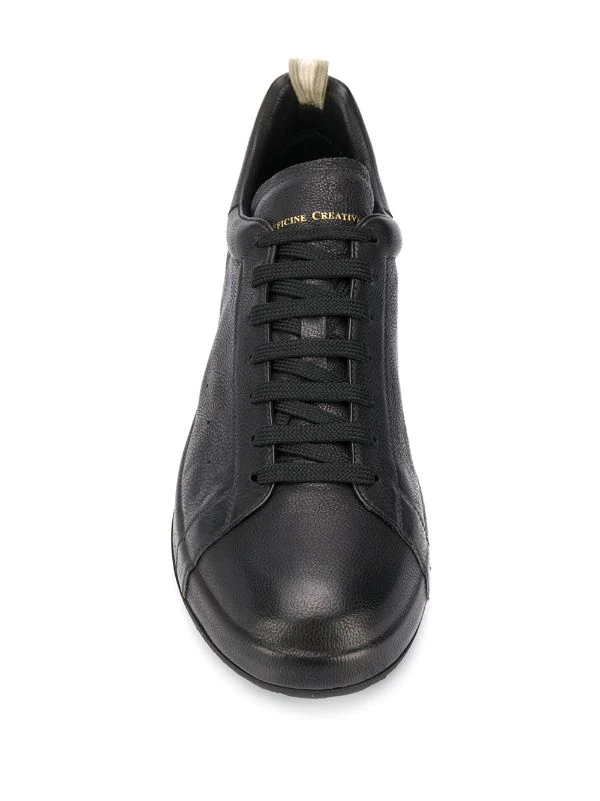 Baskets à détails contrastants en cuirs Officine Creative avec languette arrière, laçage sur le devant, semelle crantée en caoutchouc et bout rond. Couleur : noir.