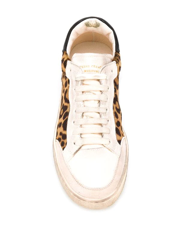 Design à empiècements, bout rond, fermeture à lacer sur le devant, languette à logo embossé, semelle plate en caoutchouc. Matière : cuir.
