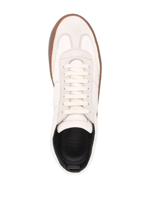 Design à empiècements, fermeture à lacer sur le devant, semelle plate en caoutchouc, languette d’enfilage au talon. Matière : cuir.