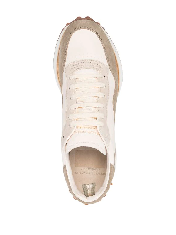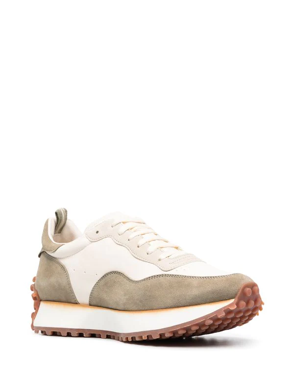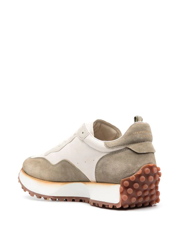 Bout rond, fermeture à lacer sur le devant, languette à logo embossé, languette d’enfilage au talon, semelle crantée en caoutchouc. Matière : cuir de veau.