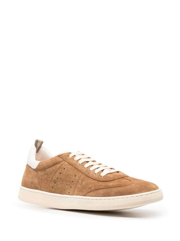 Détails de perforations, logo doré, contrefort à logo, semelle intérieure griffée, lacets interchangeables, bout rond, fermeture à lacer sur le devant, semelle plate en caoutchouc. Matière : daim.
