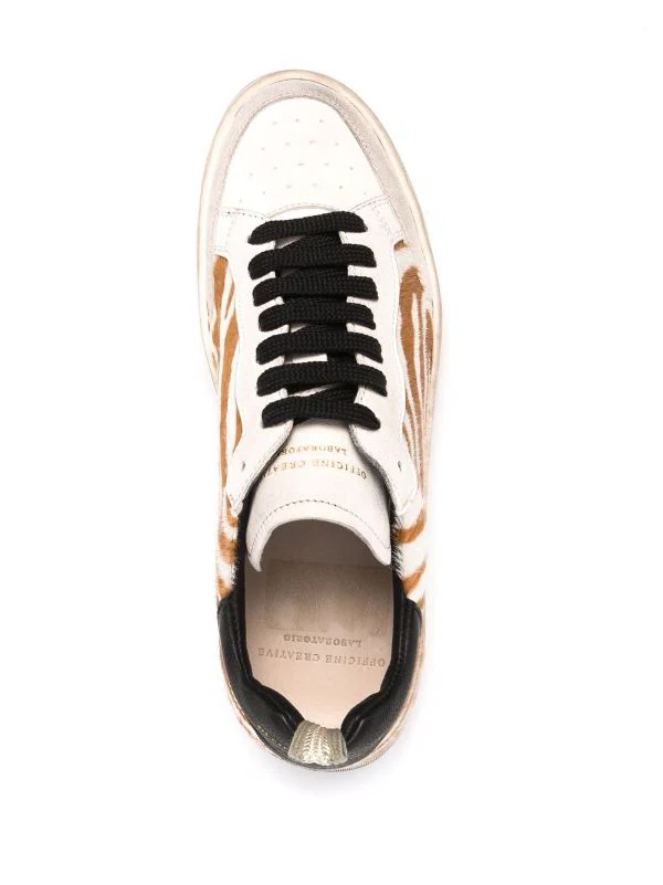 Design colour block, imprimé zèbre, détails de perforations, languette à logo embossé, bout rond, fermeture à lacer sur le devant, semelle intérieure à logo, languette d’enfilage au talon, semelle plate en caoutchouc.
