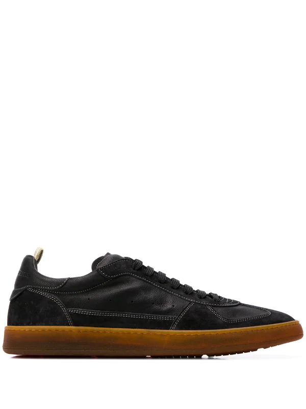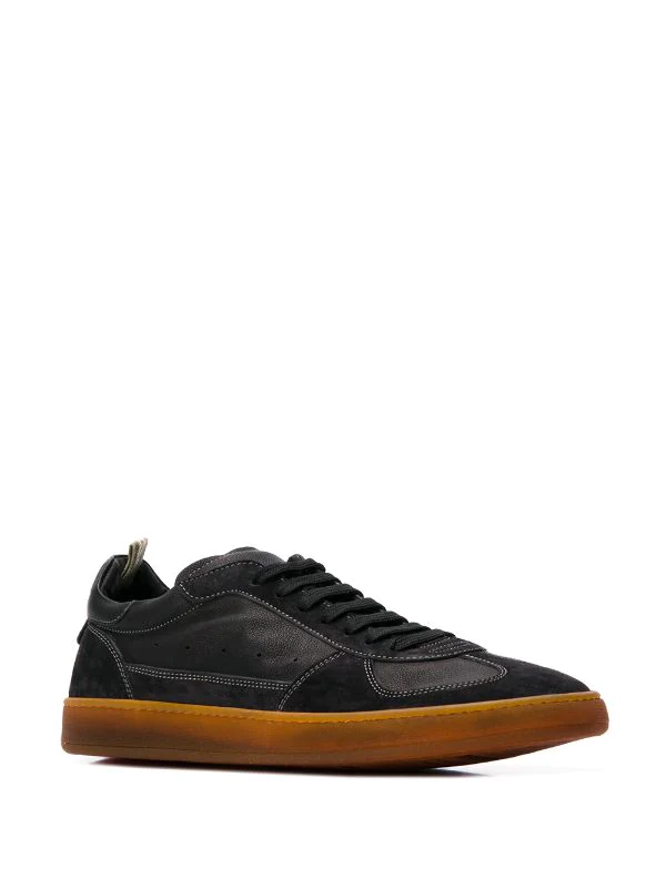 Baskets Karma 1 à empiècements en cuir de veau Officine Creative avec monogramme sur le talon, fermeture à lacer sur le devant, bout rond et semelle en caoutchouc. Couleur : noir.