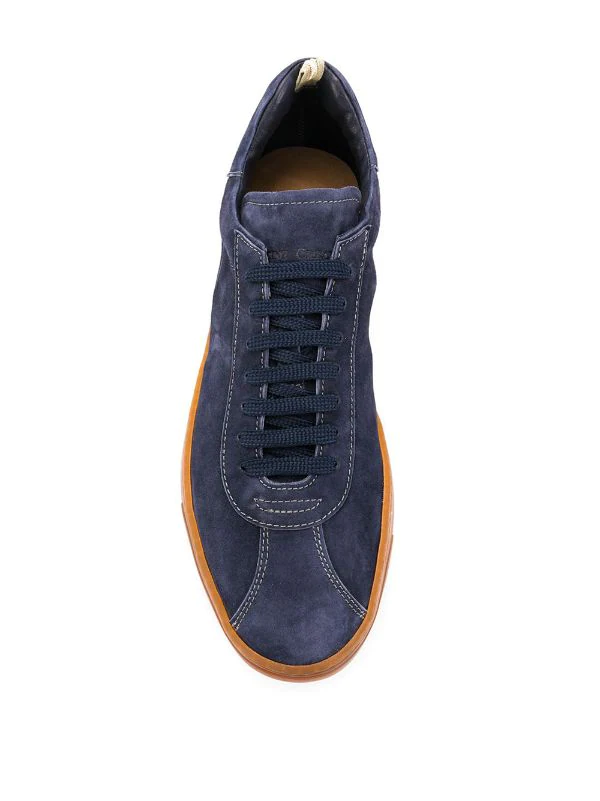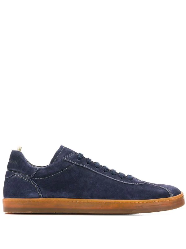 Baskets Karma en daim Officine Creative avec bout en amande, détails de surpiqûres, fermeture à lacer sur le devant, languette à logo et languette arrière.