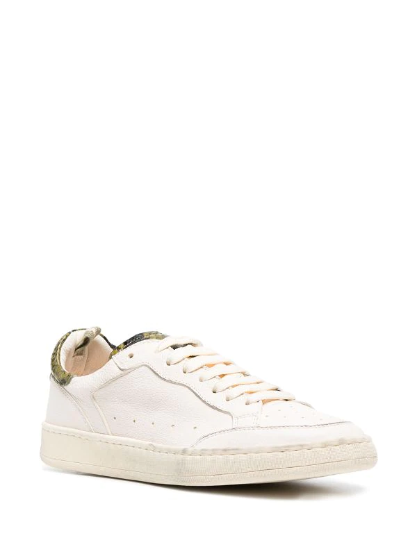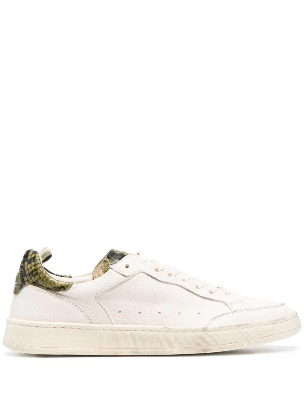 Détails de perforations, languette à logo embossé, bout rond, fermeture à lacer sur le devant, semelle intérieure à logo, semelle plate en caoutchouc. Matière : cuir de veau.