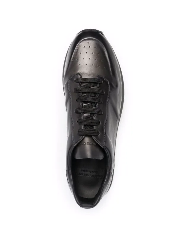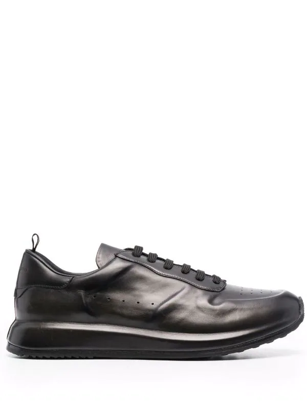 Design à empiècements, détails de perforations, bout en amande, fermeture à lacer sur le devant, languette à logo embossé, semelle intérieure griffée, semelle plate en caoutchouc. Matière : cuir de veau.