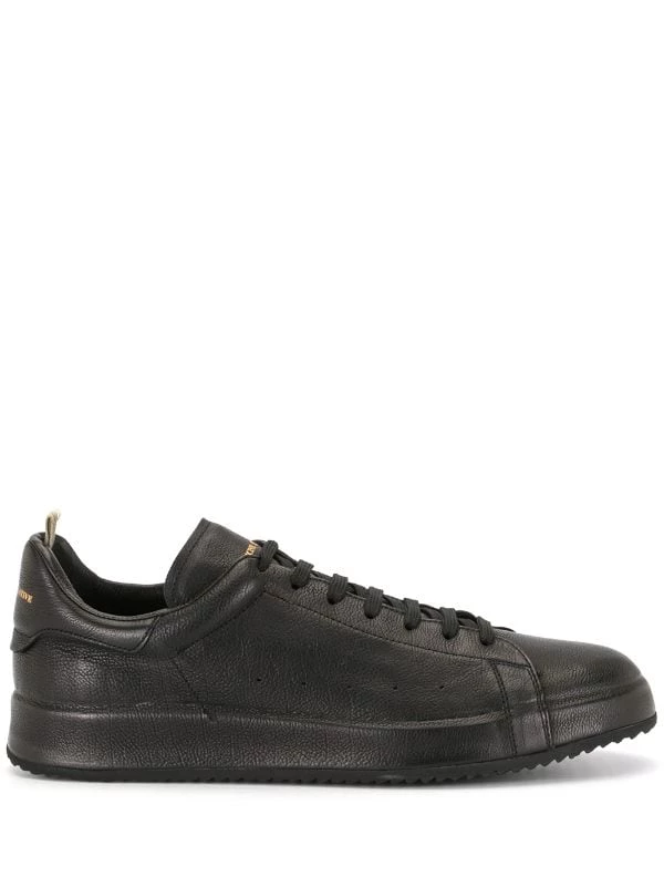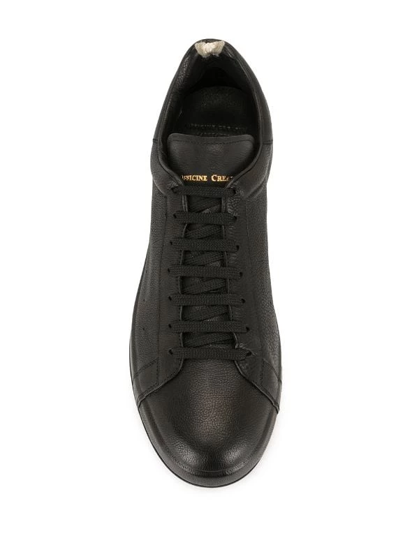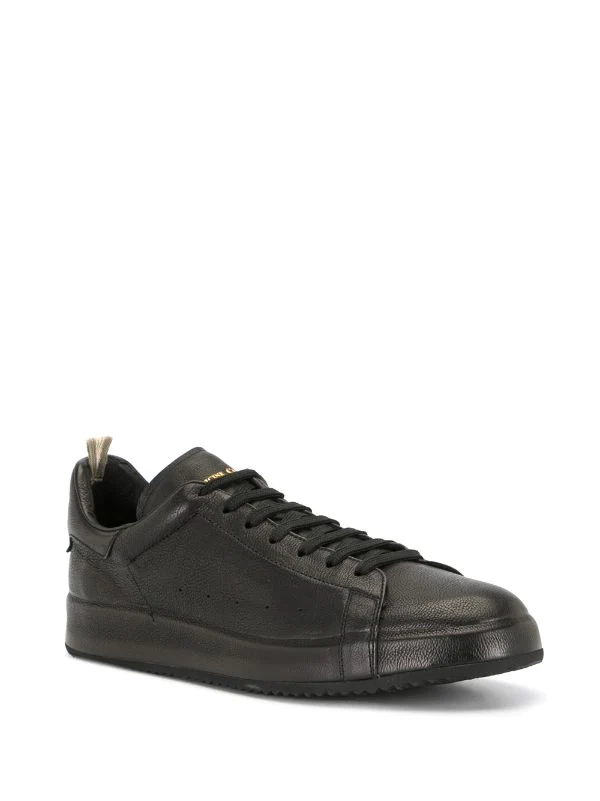 Texture grainée, bout rond, chevilles rembourrées, languette d’enfilage au talon, fermeture à lacer sur le devant, semelle plate en caoutchouc. Couleur : noir. Matière : cuir.