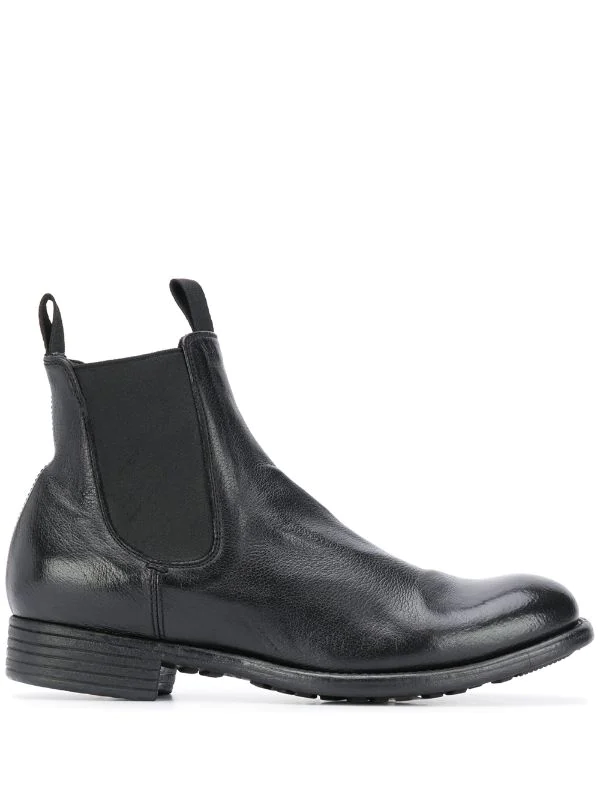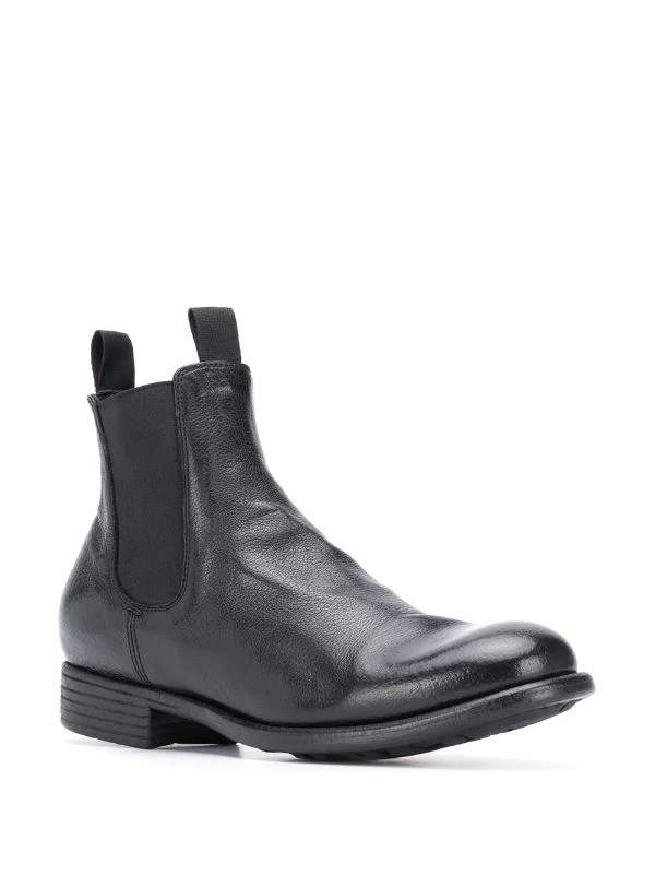 Design à enfiler, bout rond, empiècements élastiqués sur les côtés, petit talon bottier. Couleur : noir. Matière : cuir.
