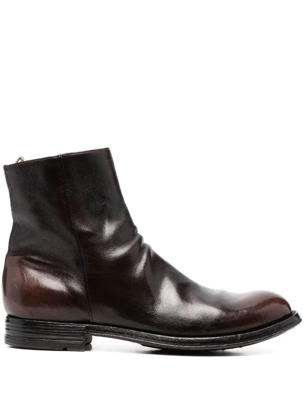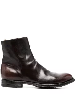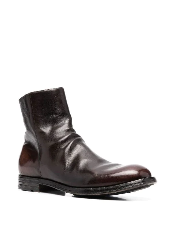 Marron, cuir, fermeture zippée sur les côtés, bout rond.