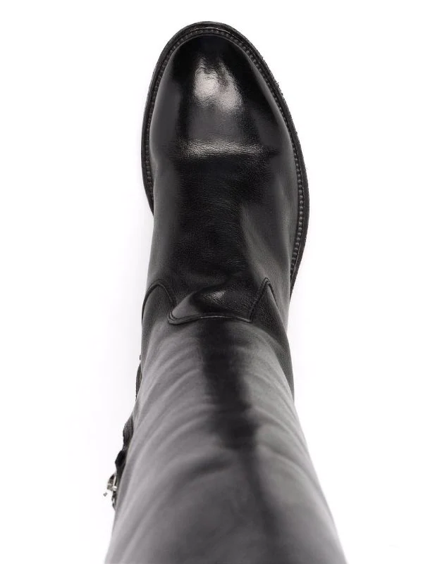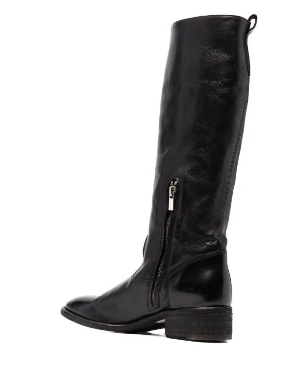 Bout rond, fermeture zippée sur le côté, languette d’enfilage au talon, coutures ton sur ton, petit talon épais, semelle en cuir. Couleur : noir. Matière : cuir.