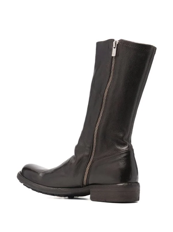 Fermeture zippée sur les côtés, semelle en caoutchouc, bout rond. Couleur : marron. Matière : cuir.