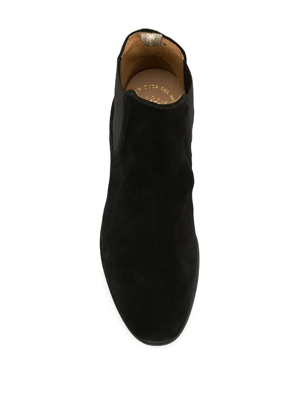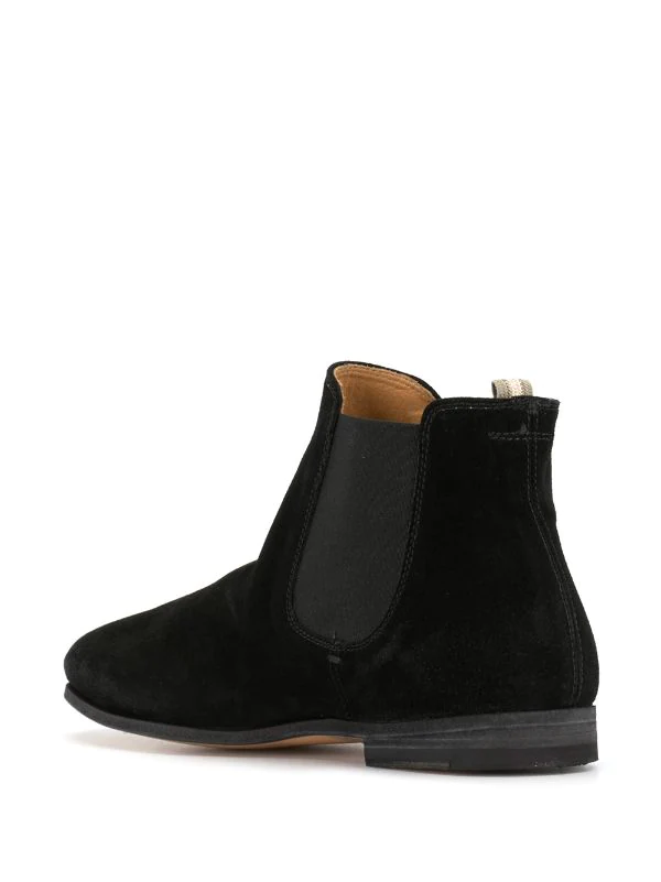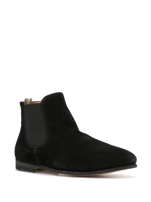 Bout rond, empiècements élastiqués sur les côtés, semelle plate, design à enfiler. Couleur : noir. Matière : daim.
