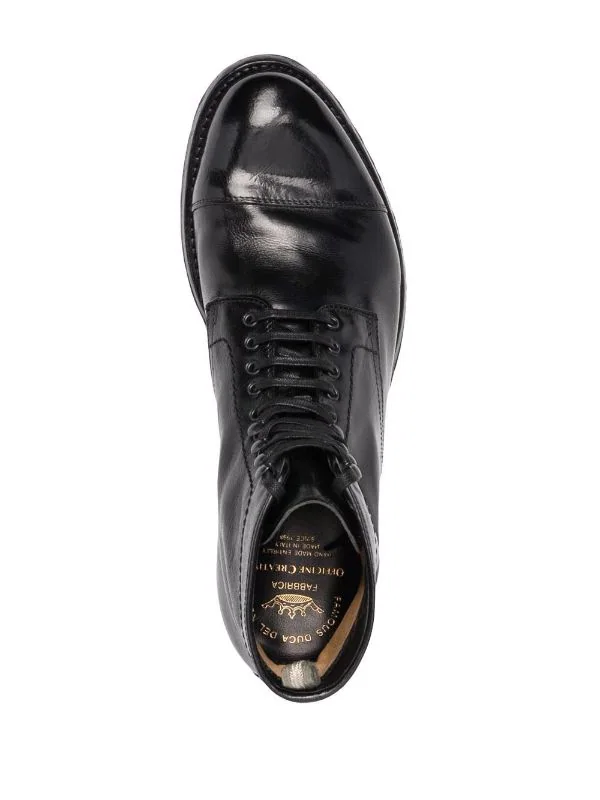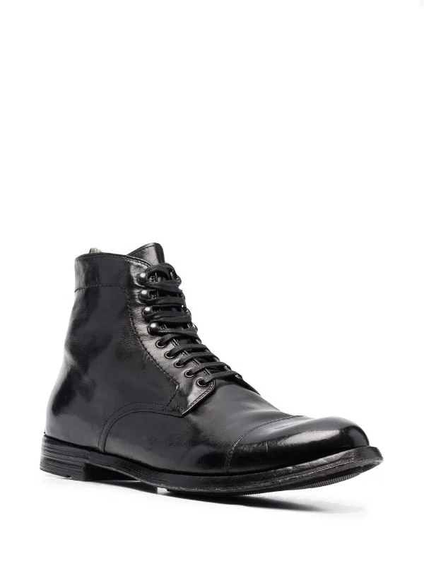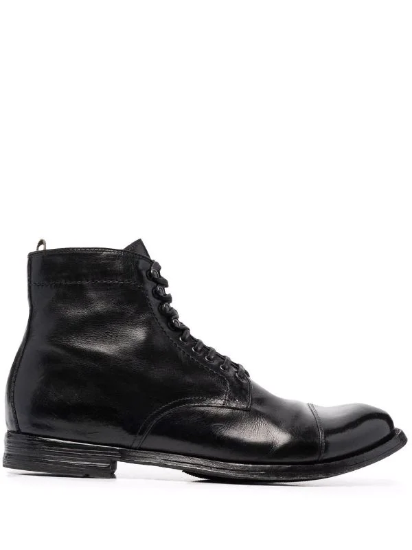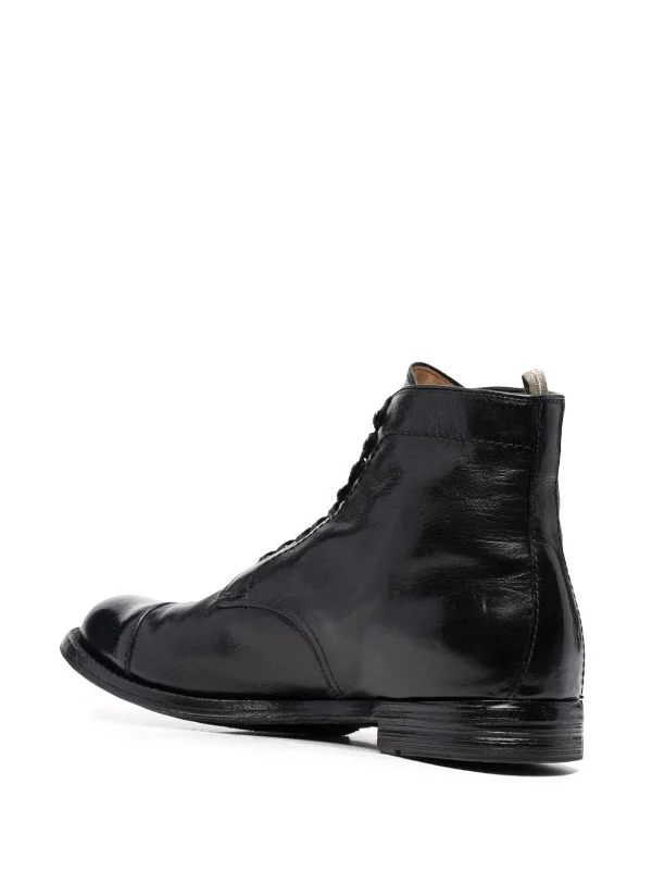 Fermeture à lacer sur le devant, semelle plate en caoutchouc, languette d’enfilage au talon, bout rond. Couleur : noir. Matière : cuir.