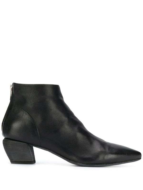 Bottines Sally Officine Creative avec bout pointu, hauteur cheville et talon mi-haut épais. Couleur : noir.