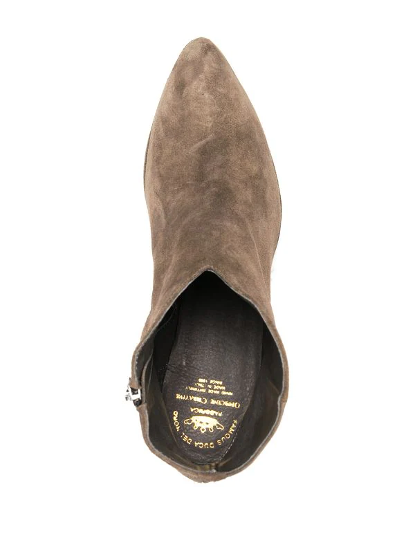 Bout pointu, fermeture zippée sur le côté, semelle intérieure à logo, talon bottier mi-haut. Matière : cuir de veau.