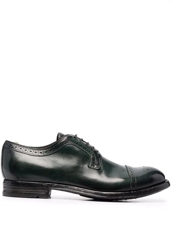 Fini poli, semelle plate en caoutchouc, fermeture à lacer sur le devant, languette d’enfilage au talon, bout rond. Matière : cuir.