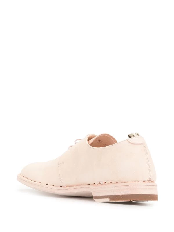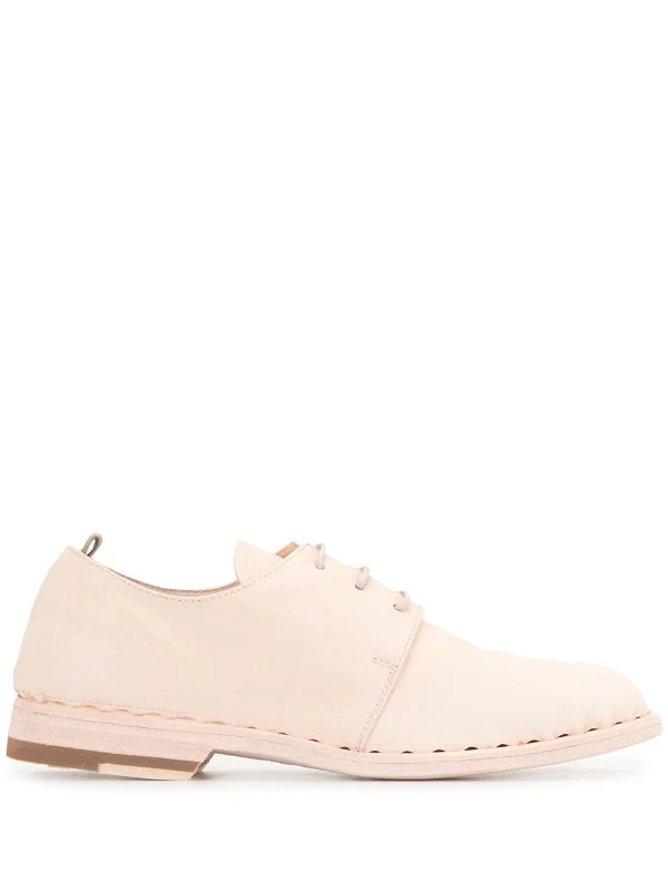 Design à empiècements, bout en amande, fermeture à lacer sur le devant, semelle intérieure à logo, petit talon. Matière : cuir de veau.