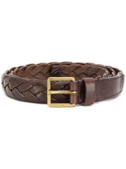 Ceinture Strip en cuir de buffle Officine Creative avec boucle dorée, cuir tressé intrecciato et détails de coutures.