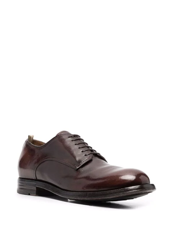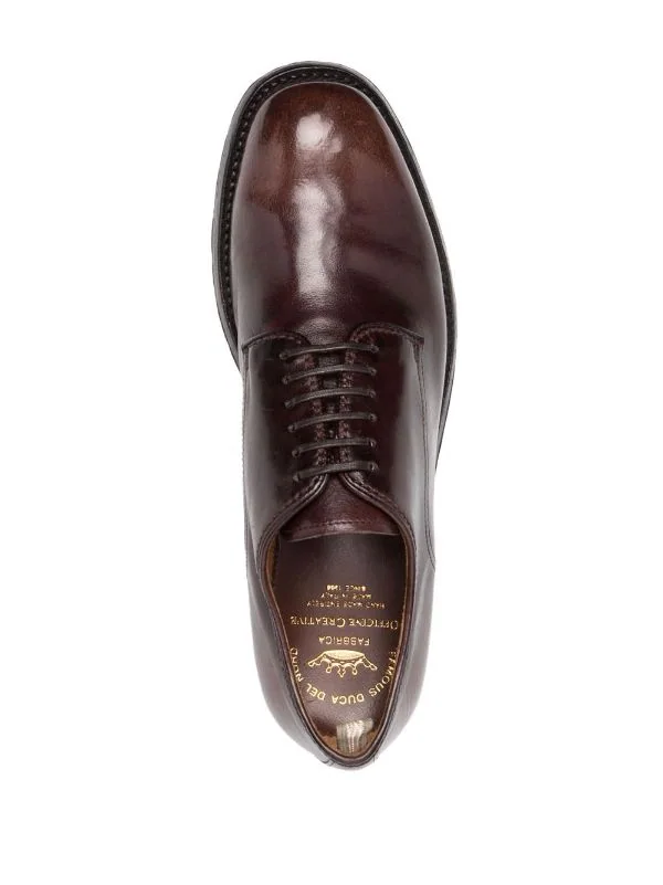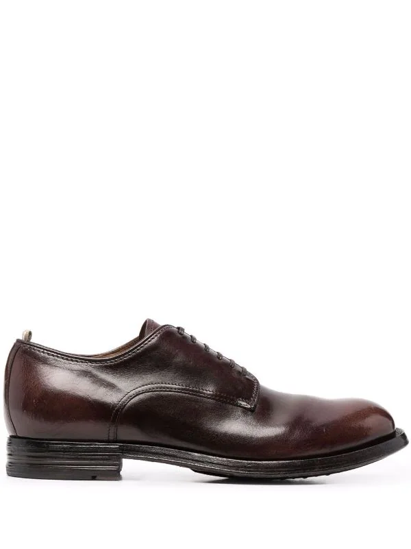 Effet poli, semelle plate en caoutchouc, fermeture à lacer sur le devant, languette d’enfilage au talon, bout rond. Couleur : marron. Matière : cuir.