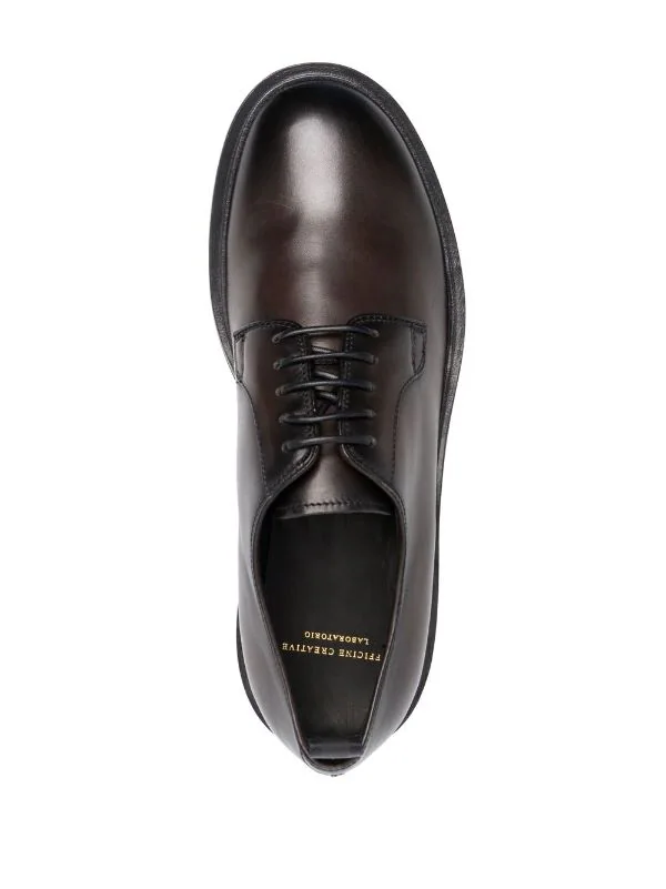 Bout rond, fermeture à lacer sur le devant, languette d’enfilage au talon, semelle intérieure à logo, semelle plate en caoutchouc. Couleur : marron. Matière : cuir de veau.