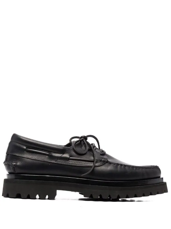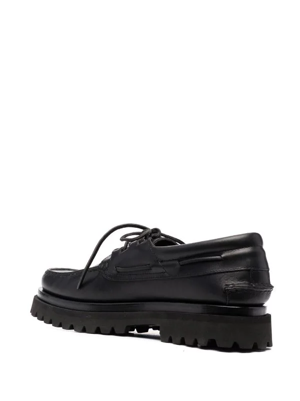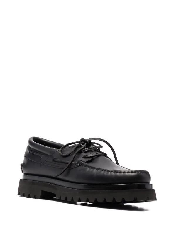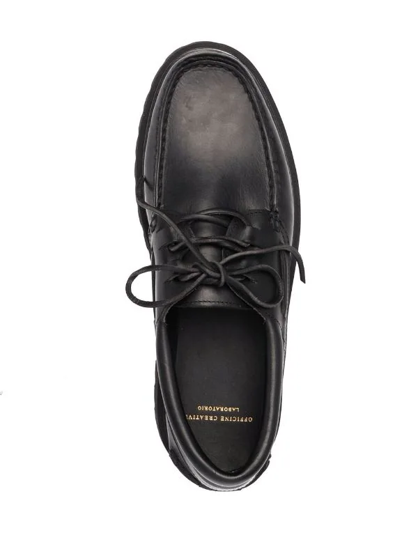 Fermeture à lacer sur le devant, semelle épaisse en caoutchouc, bout rond. Couleur : noir. Matière : cuir.
