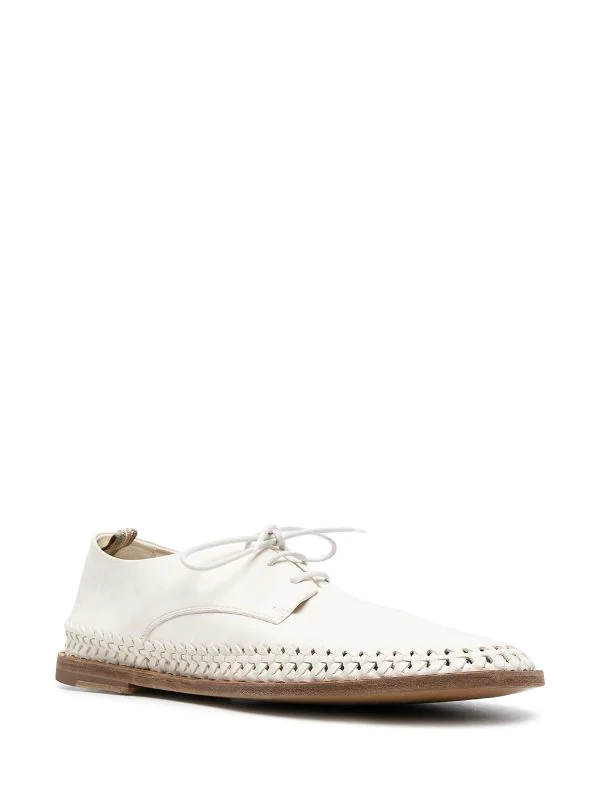 Bout rond, languette d’enfilage au talon, fermeture à lacer sur le devant, semelle intérieure à logo. Couleur : Blanc. Matière : cuir de veau.