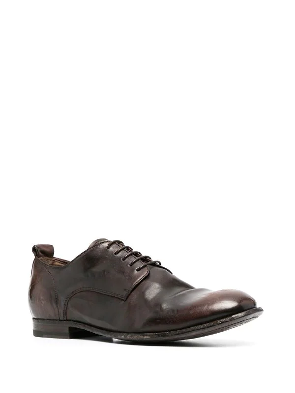 Bout rond, fermeture à lacer sur le devant, semelle intérieure à logo, languette d’enfilage au talon, semelle à épaisseurs superposées. Couleur : Marron. Matière : cuir.