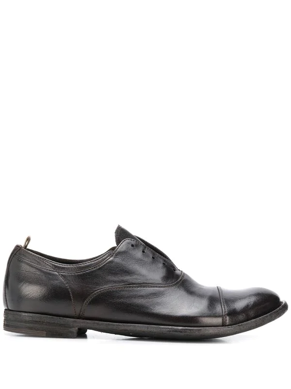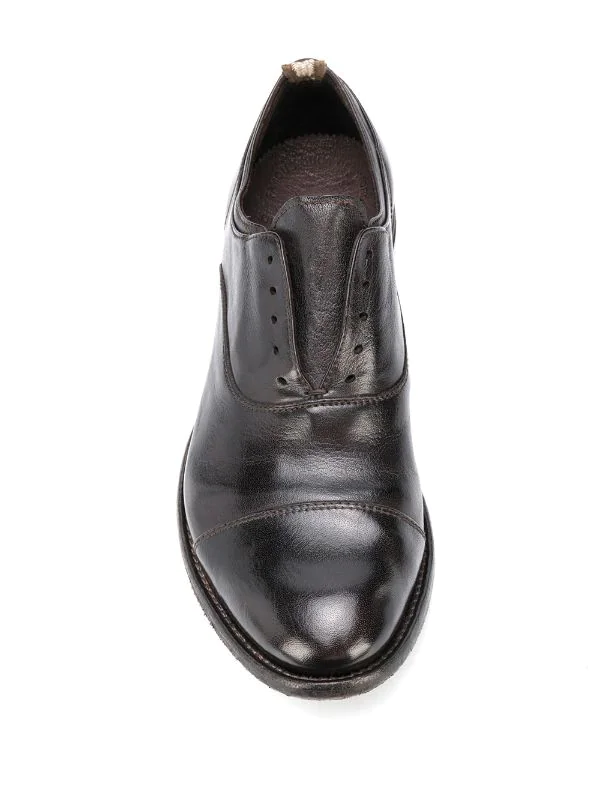 Derbies à design sans lacets en cuir Officine Creative avec bout en amande, design sans lacets, semelle intérieure à logo, languette arrière, talon plat et semelle plate en caoutchouc.
