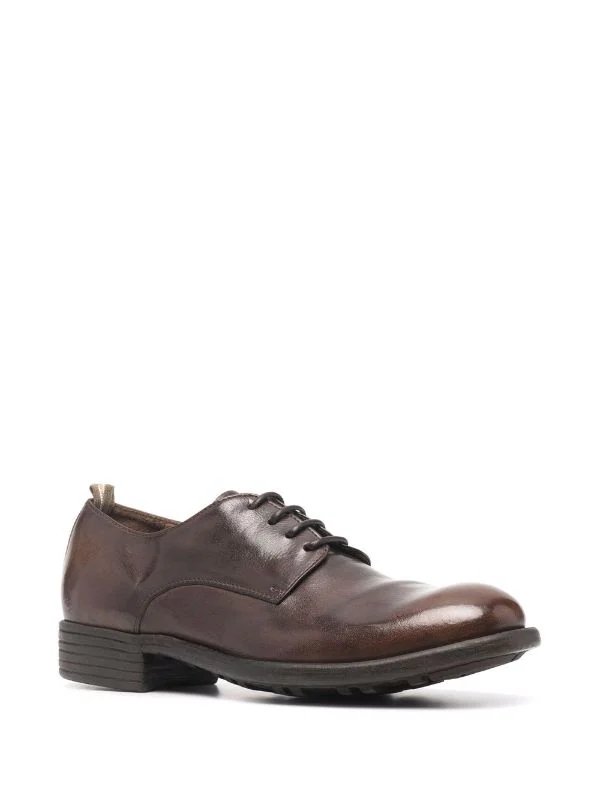 Fermeture à lacer sur le devant, bout rond, semelle plate en caoutchouc, semelle intérieure à logo. Couleur : marron. Matière : cuir de buffle.