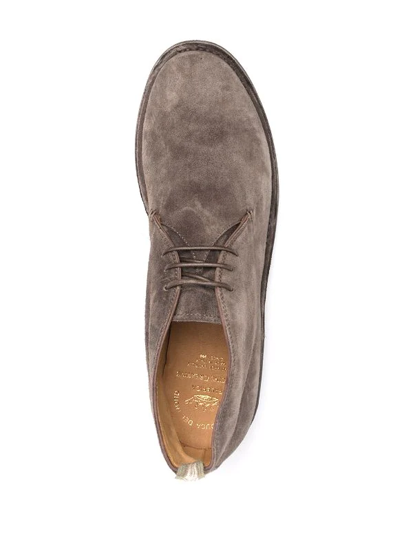 Bout rond, fermeture à lacer sur le devant, languette d’enfilage au talon, coutures ton sur ton, semelle plate. Matière : cuir de veau.