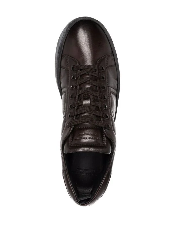 Semelle plate en caoutchouc, languette d’enfilage au talon, fermeture à lacer sur le devant, bout rond.