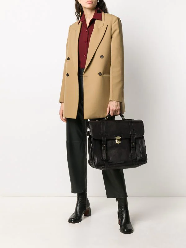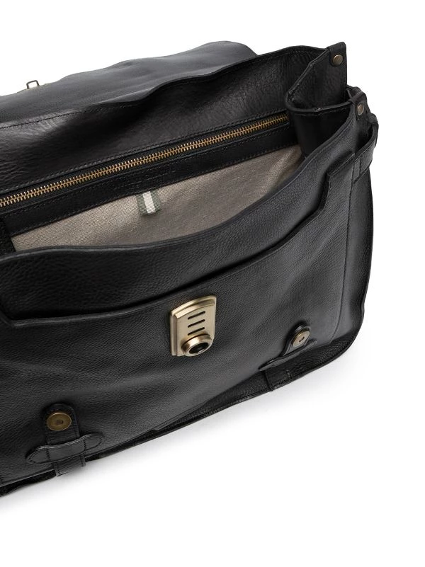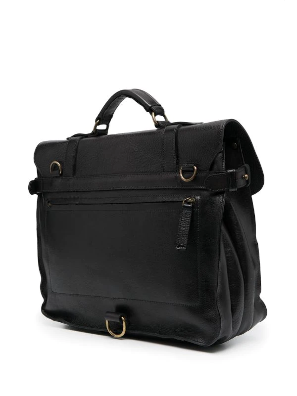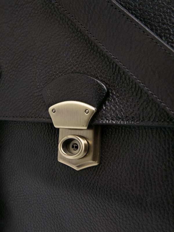 Doublure en soie, finitions en métal doré, compartiment principal, rabat sur le dessus, poche arrière zippée, anse classique, bride portée épaule détachable, fermeture à lanière à boucle. Couleur : noir. Matière : cuir de veau.