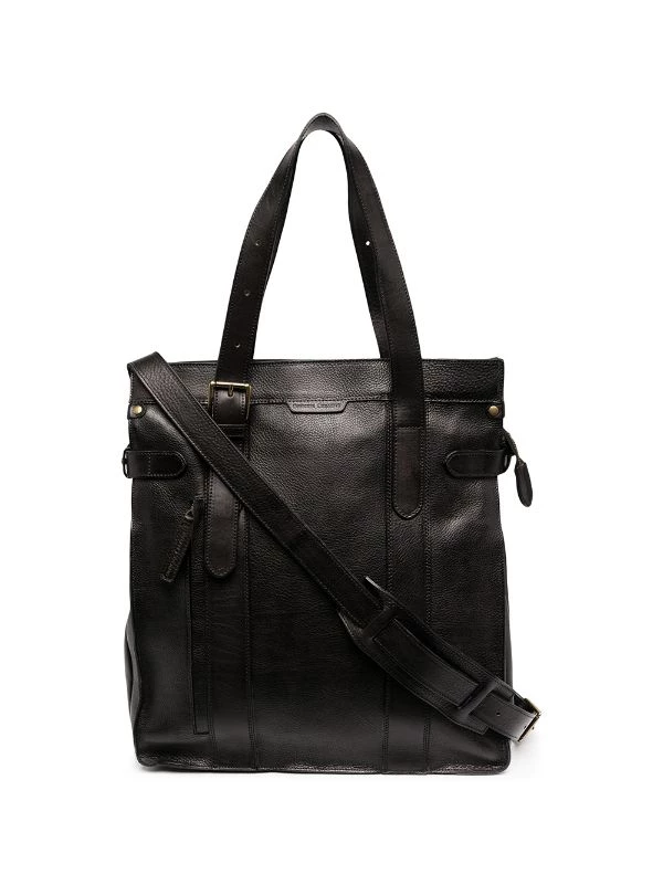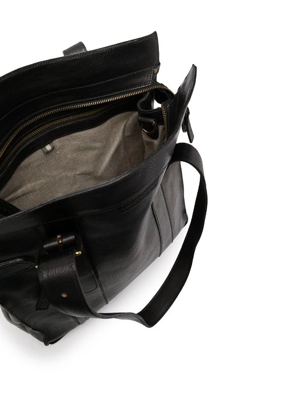 Doublure en soie, texture grainée, compartiment principal, anses arrondies, bride portée épaule détachable, fermeture zippée sur le dessus. Couleur : noir. Matière : cuir de veau.