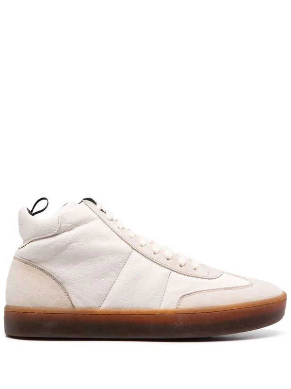 Design à empiècements, semelle plate en caoutchouc, fermeture à lacer sur le devant, languette d’enfilage au talon, bout rond. Matière : cuir.