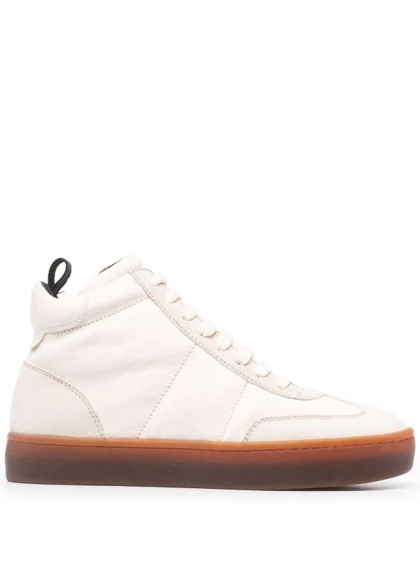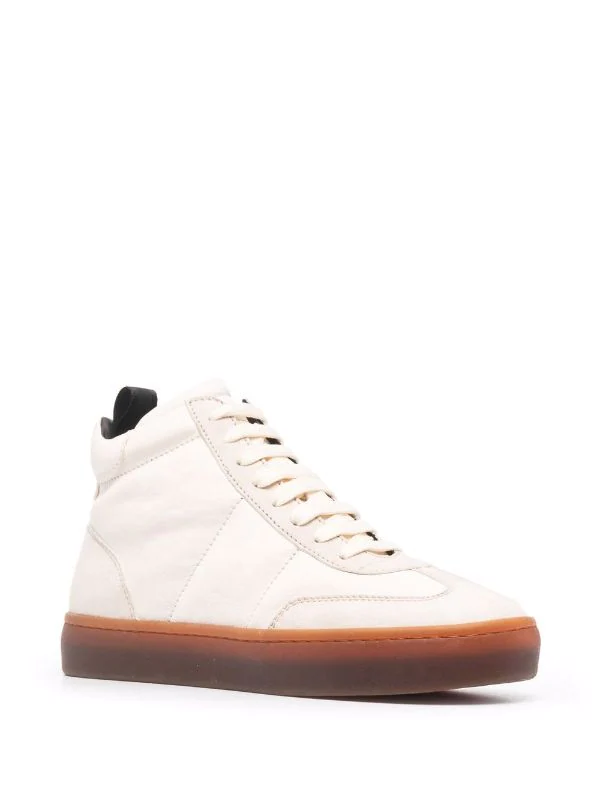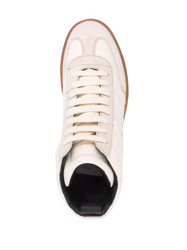 Design à empiècements, fermeture à lacer sur le devant, languette d’enfilage au talon, semelle plate en caoutchouc. Matière : cuir.