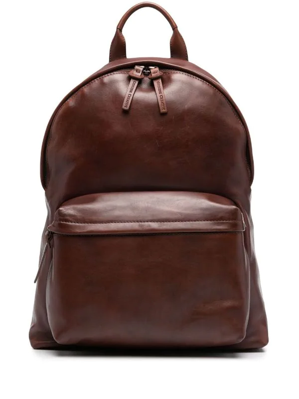 Effet usé, anse classique, brides porté épaule ajustables, poche arrière zippée, compartiment zippé sur le devant, compartiment principal, poche intérieure plaquée, poche intérieure zippée, fermeture zippée sur le dessus. Couleur : marron. Matière : cuir.