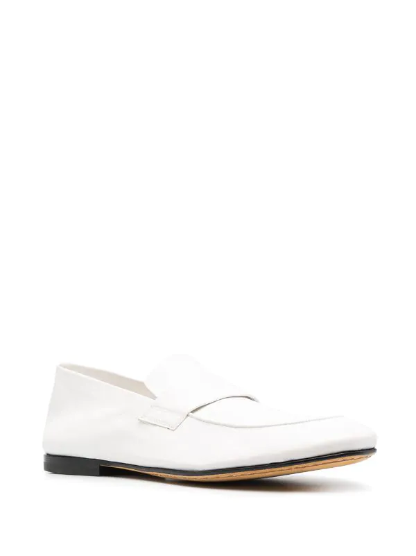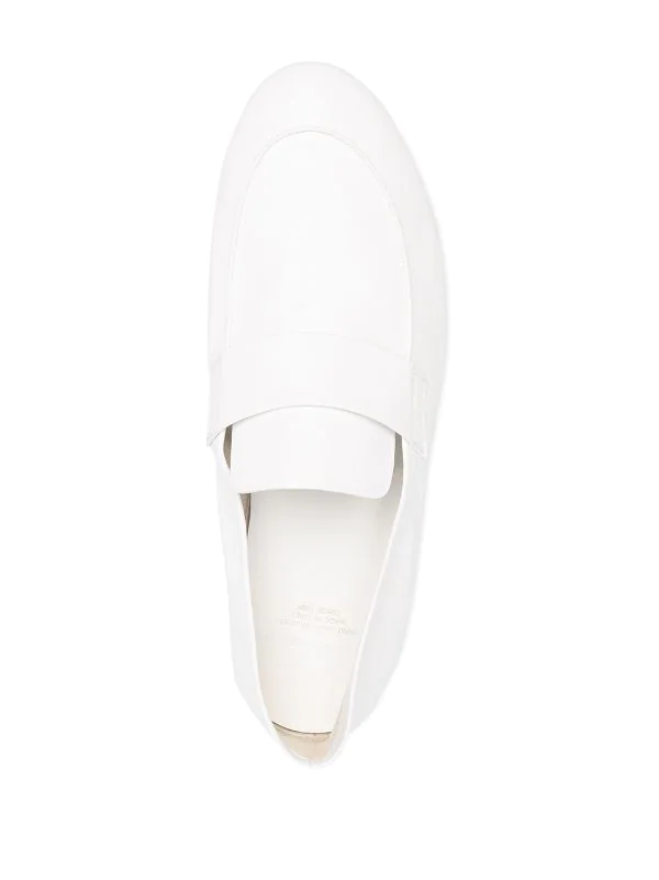 Coutures ton sur ton, bout rond, design à enfiler, semelle intérieure à logo, petit talon épais. Couleur : Blanc. Matière : cuir de cheval.