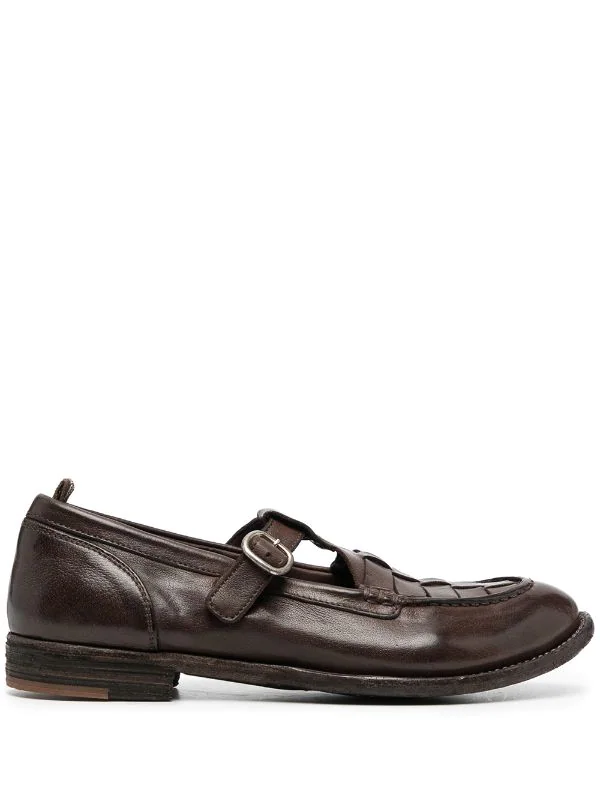 Doublure en cuir, effet peau de crocodile, languette d’enfilage au talon, bout en amande, fermeture à boucles sur les côtés, semelle intérieure à logo, petit talon.