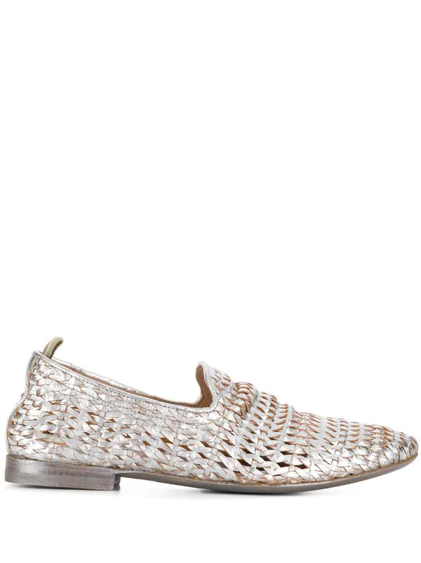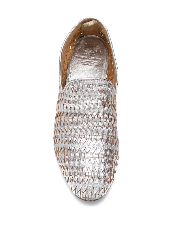 Mocassins Lilas Officine Creative avec bout rond, effet de cuir tressé, semelle intérieure à logo et semelle plate.