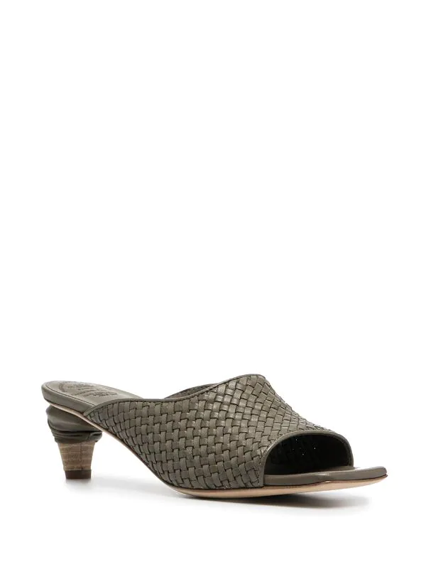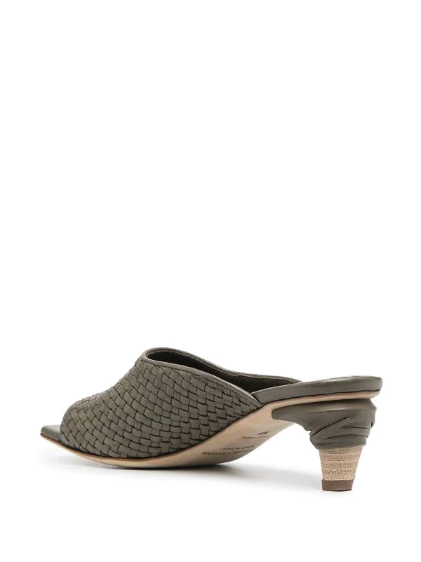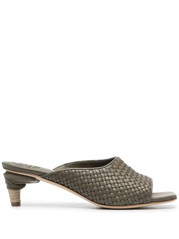 Design tissé, semelle intérieure à logo, bout ouvert, petit talon. Matière : cuir.