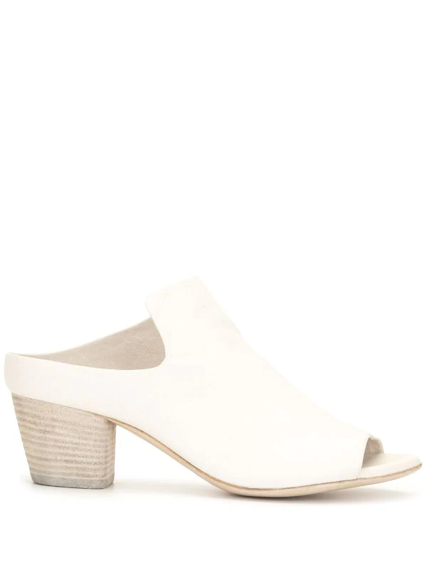 Bracelet en cuir, bout ouvert, dos-nu, design à enfiler, semelle intérieure à logo, talon mi-haut épais. Matière : cuir de veau.