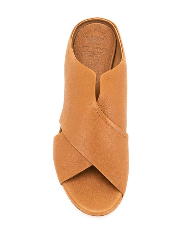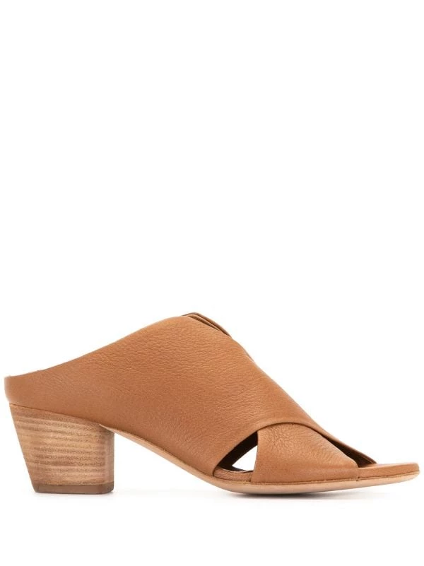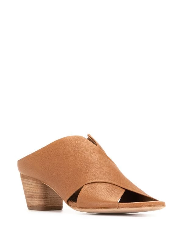 Bout en amande, détails de découpes, semelle intérieure à logo, talon mi-haut épais. Matière : cuir.