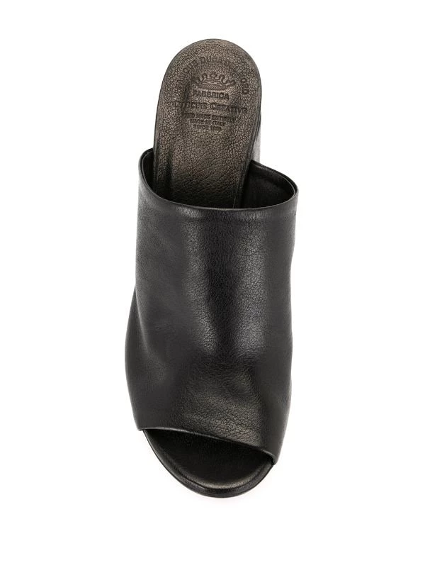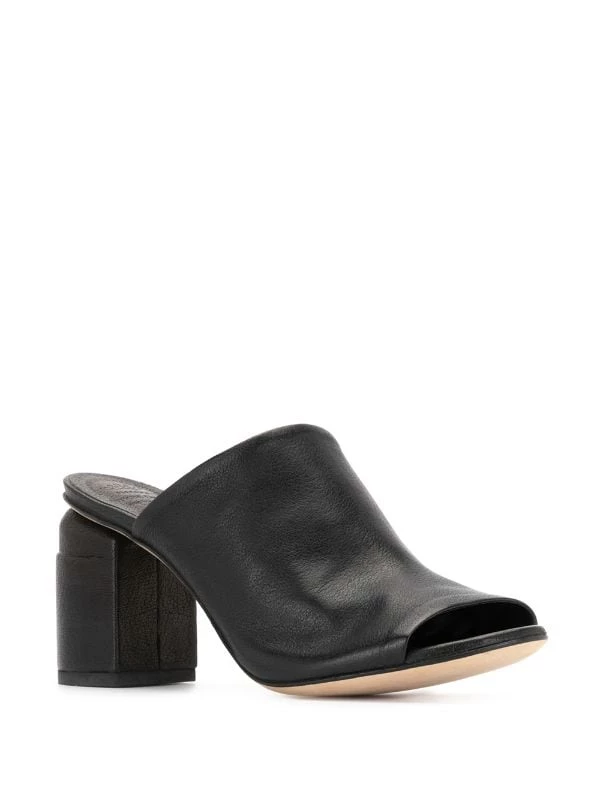Bout rond, semelle intérieure à logo, design à enfiler, talon haut épais. Couleur : noir. Matière : cuir.